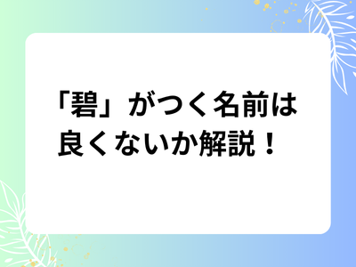 碧がつく名前は良くない?意味は悪い?キラキラネームか解説