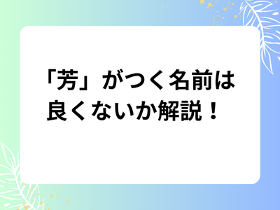 したがって、必ずしも「芳がつく名前が良くない」とは言えません。