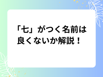 「七」という字がつく名前については、一部の文化や迷信において特定の数字が不吉とされる場合もありますが、実際には「七」という字そのものに特別に悪い意味があるわけではありません。
