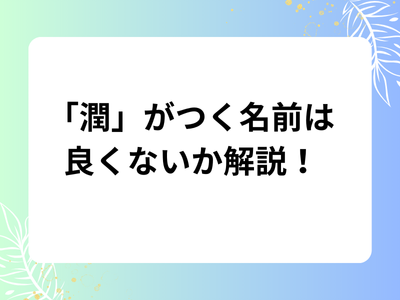 「潤(じゅん)」がつく名前が良くないということは特にありません。むしろ、「潤」という漢字には「潤う」「豊か」「潤滑」などのポジティブな意味があります。